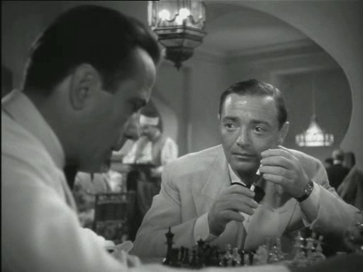Между прочим, Хамфри Богарт в главной роли - сомнительный делец, разоблачающий пятую колонну и отважно встающий на защиту демократии и свободы.
