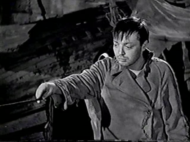 Самым важным в "Странном грузе" мне кажутся философские диспуты между каторжниками, их разговоры о смысле жизни и скрытых глубинах человеческой души. И, разумеется, маленькая роль Петера - мошенник и предатель, одержимый героиней - отрицательный, насколько возможно, но такой безумно, безумно одинокий и несчастный. Та самая двойственность, которая и очаровала когда-то самого Брехта - и на долгие годы стала визитной карточкой актера с уникальным талантом и пониманием психологии.